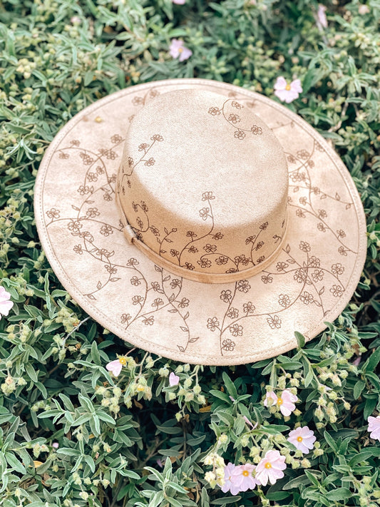 “Little Wildflower” – Hand Illustrated Boater Hat for Little Girls