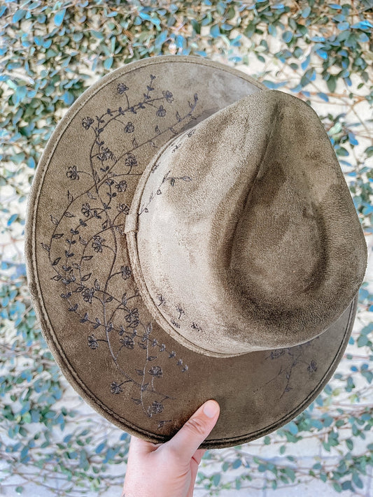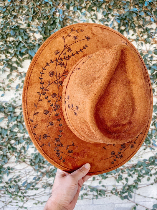 "New Bloom Era" – One-of-a-Kind Hand-Burned Wildflower Fedora (July 2025)