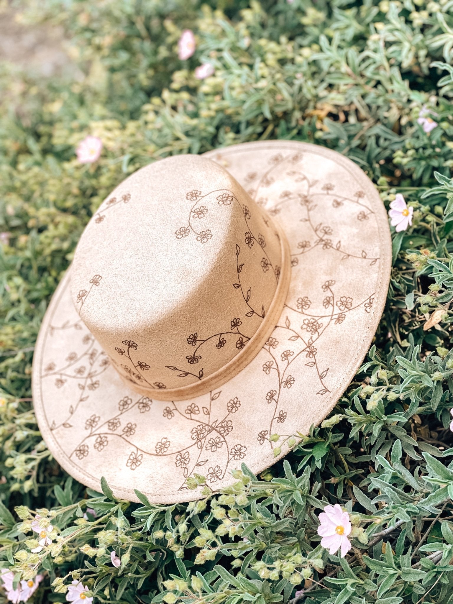 A soft and thoughtful design, my “Forget Me Not” boater hat, part of my Kids Collection, is covered in hand-drawn blossoms—gracing both the top and underside of the brim in a delicate sea of blue.