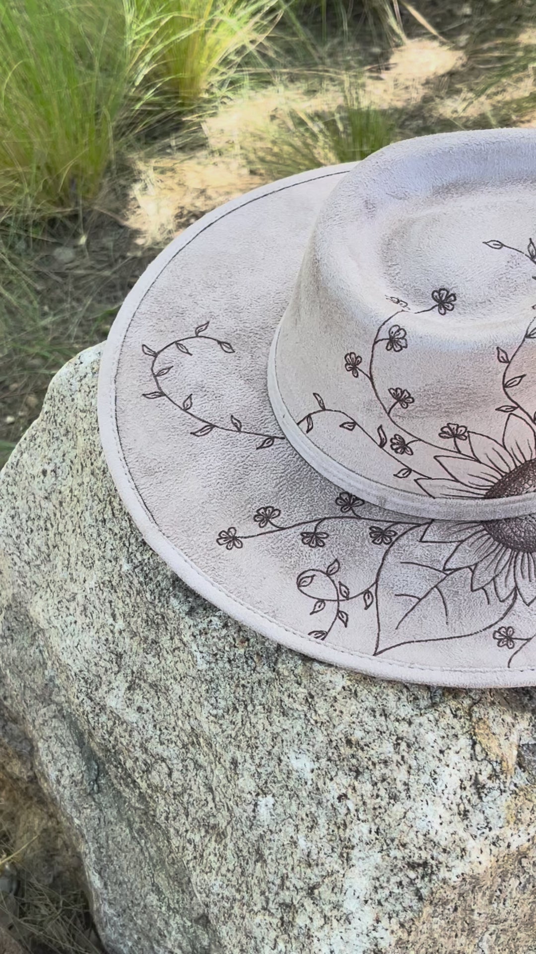 "Sunflower in Bloom" Rustic Fedora with Sunflower & Wildflower Art